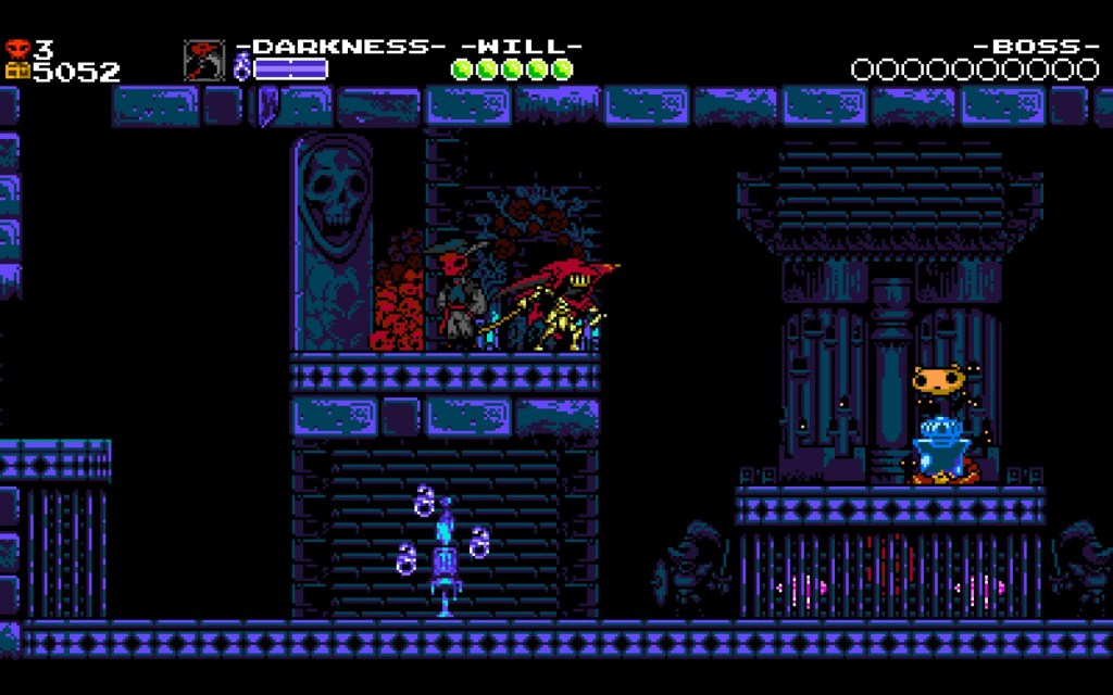This also allows designers to make saving a mechanic, one they can subvert when they want to. In Shovel Knight, you can destroy checkpoints to get more loot, but this makes the game potentially harder for you as you will have more backtracking if you die. It’s a way to let the player dynamically change the difficulty. In Hollow Knight by contrast, the designers want to let you know this is a dangerous and unpredictable world, so occasionally the benches are not benches, and lead instead to boss fights, or something else…